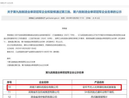近日,國家“第九批制造業(yè)單項冠軍企業(yè)”名單公示, 三德科技憑借核心產品“全環(huán)節(jié)無人化燃煤檢測成套裝備”成功入選。