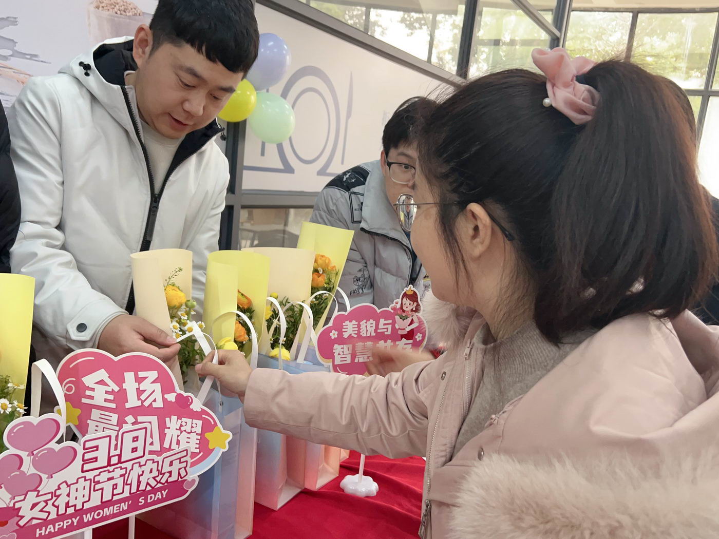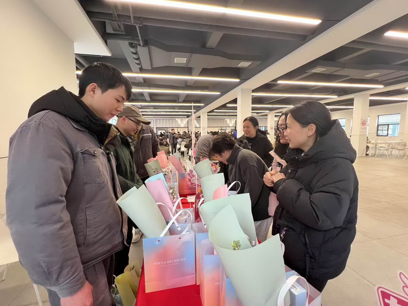 為慶祝第115個(gè)“三八”國際勞動(dòng)?jì)D女節(jié),表達(dá)對全體女員工的關(guān)愛和祝福,?3月7日中午,公司在兩個(gè)園區(qū)食堂舉辦了節(jié)日福利派送活動(dòng),并由三德男神親自贈(zèng)送節(jié)日物資和鮮花,活動(dòng)現(xiàn)場氛圍感滿滿,女神們臉上了綻放著幸福的笑容。