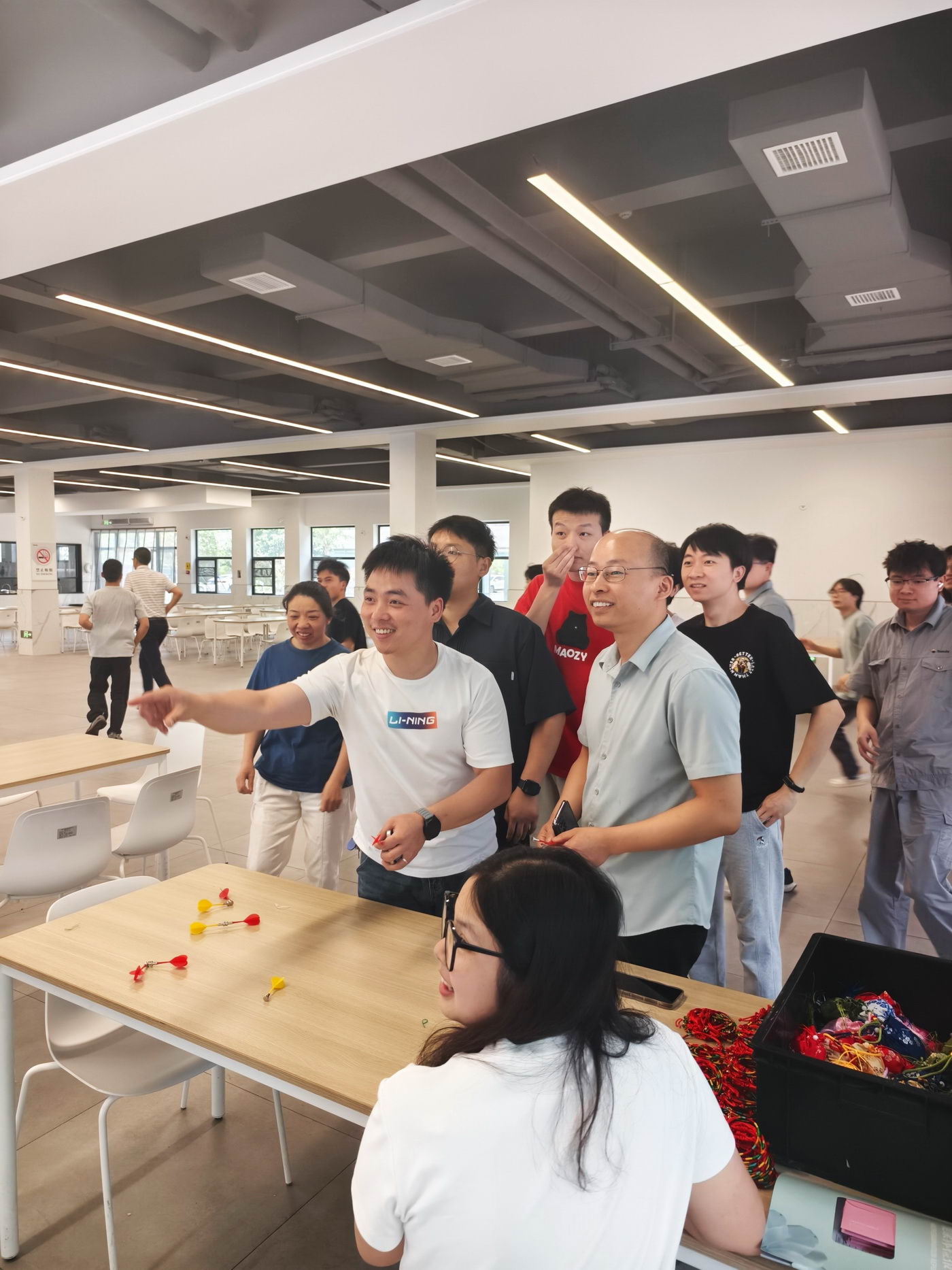 活動(dòng)現(xiàn)場(chǎng)熱鬧到爆!兩個(gè)園區(qū)食堂,同事們?cè)谏术r艷的“五毒”靶盤(pán)旁排起長(zhǎng)隊(duì)。飛鏢投射間,傳統(tǒng)“射五毒”的民俗魅力與現(xiàn)代趣味完美碰撞:有人眉頭緊鎖、謹(jǐn)慎瞄準(zhǔn);有人果斷出手、一擊即中;有人先討論研究“飛鏢技巧”……無(wú)論結(jié)果如何,大家都沉浸在歡聲笑語(yǔ)中,感受著端午特有的文化氛圍。