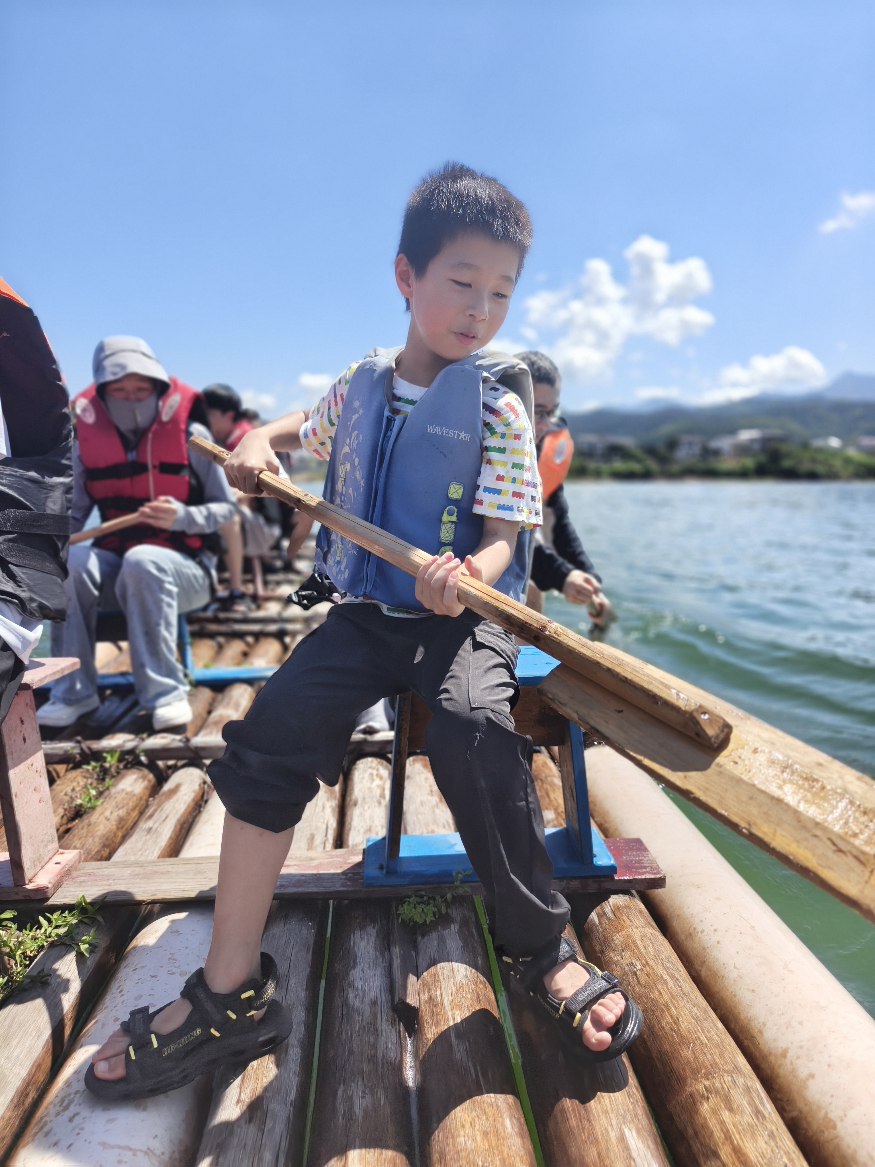 紅色記憶仍在心中激蕩,大家已經(jīng)奔赴丹霞湖旅游度假村,開啟愜意的竹筏漂流,大人小孩齊上陣,劃槳前行,微風(fēng)拂過,乘一葉竹筏,賞兩岸風(fēng)光。